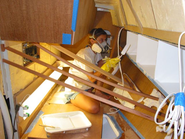 We also painted all the lockers as we went along and coated every piece of marine ply with epoxy to protect it from moisture.
